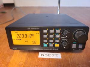 Icom IC-R100 Compact Communications Receiver. AM, FM & FM-Wide modes. Covers 0.1 to 1856 mhz. Three rear antenna ports, one SO-239 & two 'N' types, Antenna ports 50-905, 0.5-50mhz, 900-1800 on rear, all 50 ohm. Memory & Direct keypad entry. Clock & Timer. 100 memories, 20 scan edge memories. Internal memory battery is good. Exc condition, comes shipped with 12vdc power cable & VHF/UHF telescoping antenna. No trades. Receiver LCD is clean and sharp. $250 shipped, questions call 301-233-0910, Dave N3EJT