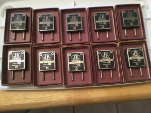 I have 10 JK Crystals for 160 meter ham phone band. These all test good on correct frequency and come in original boxes. JK Crystals was in Sandwich Illinois. Frequencies are 1890, 1895, 1930,1933, 1942.4, 1960, 1970.4, 1987.2, 1990.4, and 1996.8. Pin spacing is 0.75 inches. These are $5.00 each plus shipping, or if you buy all 10 shipping is free. PayPal, money order, cash, check if I know you. 73 bill W9VC