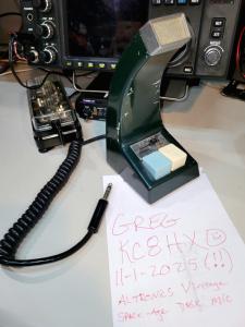 1k impedance dynamic power mic. Has a working 9v battery in base. Garnered great audio reports on my old Swan, TenTec and National NCX-3! You can see the honest wear. No nasty smells, and in great working condition. Wired for 1/4" TRS as shown. Gotta be worth $39, and that will cover shipping to 48 contiguous states. I cheerfully accept PayPal or USPS Money Order.