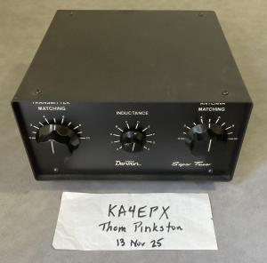 The Dentron 160 -10 AT Antenna Tuner {Transmatch), will couple a 160 -10 meter Transmitter to almost any type Antenna ystem. The 160 - 10 AT, when properly adjusted, will tune out load reactance, and transform the load impedance to 50 - 70 ohms. The 160 -10 AT also includes a highly efficient balun, so Antenna fed with open - wire line may be properly tuned to desired frequency. The tuner looks new. As far as I know, it has never been used. Tunes long wire, end fed, dipoles, pretty much any antenna from 160 m to 10 m.
