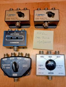 From an SK estate, here are 5 coax switches. Selling all together, AS-IS, no returns. Proceeds go to Schofield Middle School Radio Club N4SMS Aiken SC . No trades. $70.00 shipped continental USA. Zelle or money order for payment.