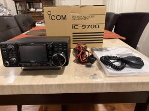 In very pristine like new Icom IC-9700 Transceiver, Base, All-Mode, 2M/70cm/23cm, SDR, D-STAR, Touch Screen Color TFT LCD, Hand Microphone. Can be used for full duplex satellite operations.