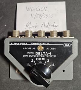 New, never hooked up. Had plans for it but it just sat on my desk. Alpha Delta Coax Switch with surge protection, 4-port SO-239 UHF female, rated through 500 MHz.