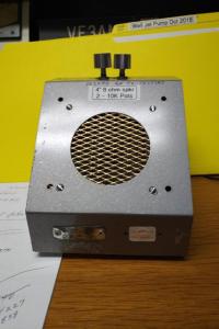 This is a Johnson Test speaker and two 10K pots in a sloping front box. The speaker is 8 ohms, 4 inches.