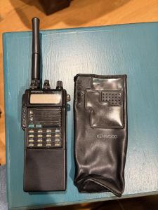 Cleaning out my dad’s (silent key) garage, I found a Kenwood TM-77A. Includes BC-11 quickcharger, 3 nicad batteries, MFJ-287 speaker mic, regular 110v charger and cigarettle lighter power cord.