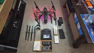 Comes with 3 brand new 7500mah lipo drone batteries and brand new lipo 3 battery balance charger, one brand new 6800mah nimh controller battery, 1 controller, 1 gimbal, 4 extra blades, original box, controller screen sunshield, drone camera cover, 1 Q500 4k drone with 4k camera, 2x 16gb sdcards (one in remote / one in drone), 1 motor holder tool for attaching blades, 1 printed copy of manual. asking $600.00 cash with local pickup in Scottsbluff, ne close to Walmart. I am willing ship and accept PayPal, but you will be required to cover all costs associated with shipping which will not be cheap to properly pack and insure. We only have a staples here not a ups store so I can't get discount packing materials.