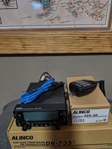 Alinco DR735T with Box and Mounting Bracket, Mic and Power Cable.