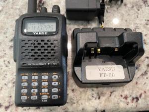 Here is one of a few HTs I will be selling to clean out my shack. This is a very nice Yaesu FT-60 handheld VHF/UHF transceiver. It has a maximum output of 5W and receives 108-137 MHz (Air Band), 137-520 MHz (AM/FM), and 700-999.999 MHz (FM). It has 1,000 memories in 10 banks. Sale includes the drop-in charger with power supply. Asking $90 + shipping. I accept PayPal.