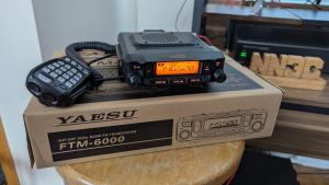FOR SALE: My nearly new and fully functional Yaesu FTM-6000 dual-band FM Transceiver. This radio is absolutely (like new) both cosmetically and electrically. I am the original; there have been no modifications or hacks. It has lived its life in my radio room that is pet free and a smoke free environment. The transceiver is complete with all its original accessories, microphone, DC power cord, hardware and mobile mounting bracket. This radio has the detachable head for convenient mounting; has three power output levels on both bands: (50, 25 & 5 watts). For 50 watts power, the user must have a 13.8VDC power supply that is capable of delivering at least 10 amperes of current for full output. This transceiver has the original box and operator's manual. The serial number on the box and the unit match and what you see in the picture is the actual radio, not an internet stock photograph. This is a beautiful radio and you certainly will not be disappointed. $220.00