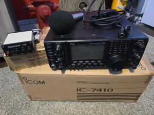 I am selling my like new condition Icom 7410. Its in excellent condition and works as it should. It includes the box, radio, power cord and mic. Also included is a never used signal link and a Heil ICM microphone. Asking $900 shipped to the lower 48 only. No warranty but the radio works... I accept paypal as payment. I have more pics available.