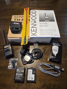 I'm selling a Kenwood TH-F6A Tri-Bander HT (144/220/440 MHz) radio in excellent condition with original box & manual. Accessories include: Speaker/Mic (SMC-34) – Brand New, Large Capacity Battery (BKCLPB42-4000-D 7.4V 4000mAh), Spare Wall Charger, Spare Battery (PB-42L 7.4V 2000mAh), RT Systems Programming Cable & Software (USB-K4Y & KRS-F6), Diamond RH771 Antenna – Brand New.