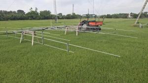 I took this antenna down this past spring .It is dissembled to under 16Ft length and can be broken down smaller to fit in a pickup bed, with your help . I'm attaching 2 pictures to show no bent elements . Nothing wrong with this antenna , I have the printed manual from Optibeam, everything is there except the 1:1 Balun .