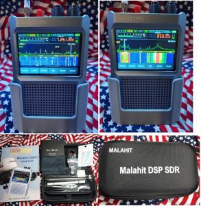 The Malahit DSP2 wide band receiver covers 10khz to 2GHz and receives AM, SSB, DSB, CW, NFM, and WFM. Built-in dual diaphragm speakers for great audio and a beautiful bright display. In like new condition with all original accessories plus The Radio Today Guide and a very nice stand. Heavy aluminum construction and 5000 mah battery and latest firmware.