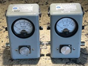 I have available two BIRD 43 wattmeters. They both work correctly ad both have UHF female (SO-239) connectors on the coax line, but if you want N connectors or BNC connectors, let me know and I will change them for you.