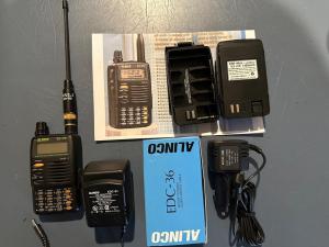 EDC-93 (110-volt charger), New EDC-36 DC Charger, New Batteries America EBP-46 9.6-volt 1450 mAh. Battery – Purchased August 2025 and an EDH-29 AA Battery Pack. Aftermarket ANLI RD-9H antenna. Will email manuals and brochure. All in very good condition.