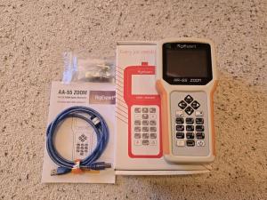 As new AA-55 Zoom in original packaging with manual, soft case, and USB cable. Included are: Amphenol 50 and 75 ohm 1w BNC dummy loads and a BNC-to-PL259 adapter. 60kHz to 55 MHz. Color display. Water-proof keyboard.