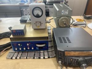 12 volt, all HF band, near legal limit, Henry SS-750, mint condition, late model, extremely rare, “Blue Face Version”, Solid state RF power amplifier, utilizes Eight 2SC2879 transistors, designed for high power mobile or base station use. Covers 1.8 to 30 MHz (160m to 10m bands). Shown with 13.8 volts and 100 amp supply producing 850+ watts, drawing 100 Amps, 90 watts drive on 75 meters. Comes with matching Blue Face remote and as new remote cable. Only minor cosmetic flaw is a small bruise, lower left of the amp meter as shown. Some units, particularly those with blue faces, were considered experimental by the manufacturer and were not meant for wide sale $3500 shipped insured FedEx. Zelle or PayPal. Have several other photos.