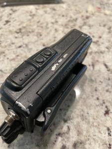 Here is the third of a few HTs I will be selling to clean out my shack. This is a nice Yaesu FT-60 handheld VHF/UHF transceiver (the third FT-60 I have offered here). It has a maximum output of 5W and receives 108-137 MHz (Air Band), 137-520 MHz (AM/FM), and 700-999.999 MHz (FM). It transmits on 144-148 MHz FM and 430-450 MHz FM. It has 1,000 memories in 10 banks. Sale includes an aftermarket drop-in charger with power supply, and belt clip. No manual. Instead of the original antenna, this one has a very nice Diamond SRH77CA antenna (15 inches long). The only issue with this HT is cosmetic - there are some areas on the left side where the paint has been scraped off. Asking $90 shipped to CONUS. I accept PayPal.
