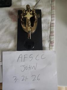 From a local estate I have a Nye Company straight key model number 315-001 and this key is beautiful. Looks brand new. It has a square metal base, and is brass with very nice movement. Has a 1/4" mono plug attached to it, ready to hook to your radio. Comes in its original box. Asking $65 shipped.