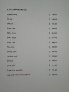 I am sadly parting out my ICOM IC-7800 I have attached a list with prices which includes shipping with tracking for USA and Canada US Order may also require Duties at 10%