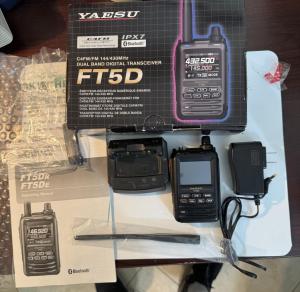 Here we have FT5D.. All parts and manual in original box.Comes with drop in charger, 2 battery packs. $240.00 plus $ 15.00 for shipping. USA only. Payment via Zelle, MO, Cash App or personal check with clear time. I am good on QRZ.COM as well. TY for looking.