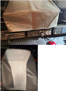 The one pictured is on my FTDX101 but fits the Icom IC-775DSP and other large radios. This one was just unfolded and placed on radio for the picture and the creases smooth in a day or so. The large IC775/FTDX101 is $20, all others $10 each plus $12 shipping TOTAL regardless of how many you buy. Please money order or even a personal check