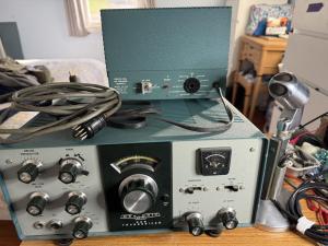 Selling my HW-101. It has the CW filter installed and works well. Still has the phono plug for the antenna. Comes with the HP-23B power supply and 9 foot power cord and a microphone. Receives and transmits well. Output is about 60 watts so the finals may be getting older. It has not been recapped but I did replace the old dry rotted Preselector belts. Here’s a short video of it receiving on 40 meters:
