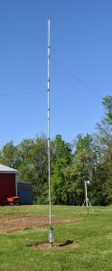 Photo shows vertical w/o 75m resonator; black lines are paracord guy wires. Includes only standard 6BTV base.
