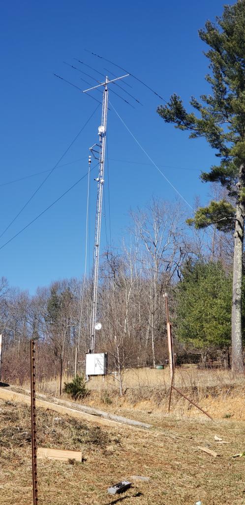 100 ft rohn 25 with 2 top sections 3 bearings 3 rotor plates guide wire tilt over at 10 ft base with 10ft rohn welded to the hinge also Ibeam with 12000 lb winch