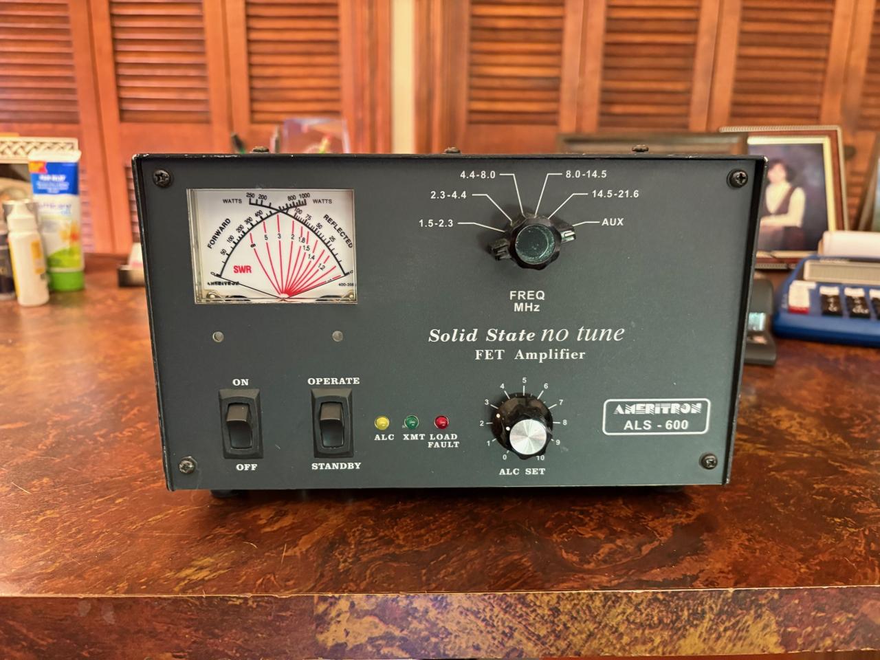 ALS 600 Ameritron amp. 160 through 10 meters. Currently wired for 110 volts, but can be wired for 220 volts. Asking price $995.00. Recently checked out by professional electronic tech and is working as new. Will not ship. Deliver, pickup, or meet withing reasonable distance. If not sold online, this will be available for sale at the Belton Hamfest in October. All sales final.