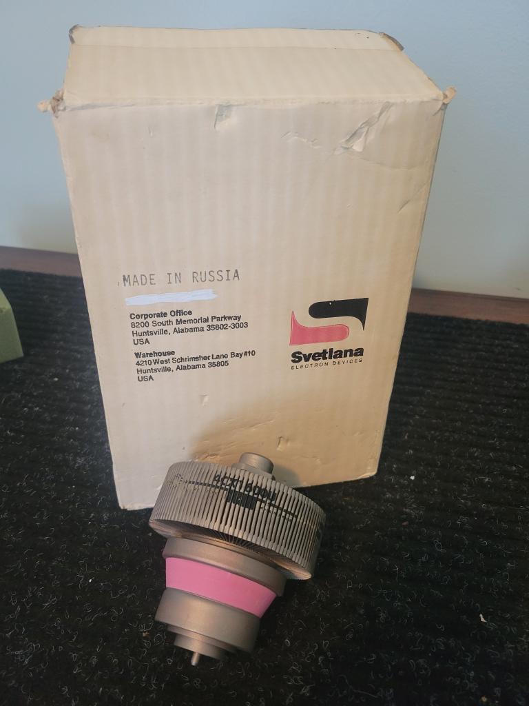 I have for sale a brand new, still in the box Svetlana 4cx1600u ceramic tube. This is in excess to my needs as I have no use for it. I have had this for several years, unopened. I just opened it to take pictures. $100 plus shipping and PayPal fees, PayPal only unless other arrangements are made.