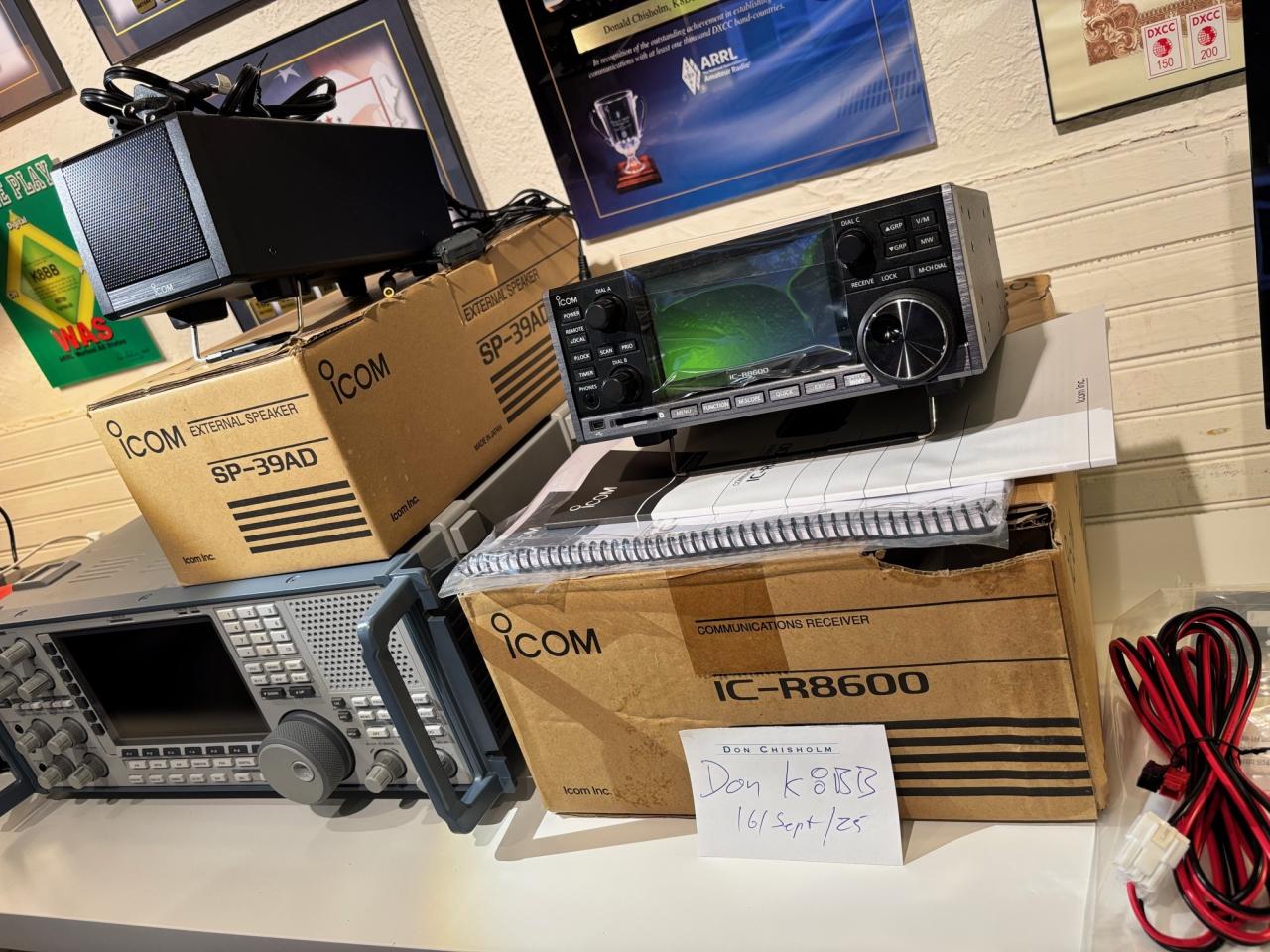 FS: one Icom IC-R8600 receiver with the Icom SP-39AD speaker/power supply included. Both are like new, very little use. R8600 S/N 010018xx: original box and packaging (one corner has damage, see pic); original Japanese language manual; new (unopened) English language manual from RadioManuals.com (high-quality reproduction); DC power cord (Anderson PowerPole connectors added); screen protector (removed for use, put back on for pics); little baggie of fuses, RCA-connectors, DC-connector, etc. SP-39AD S/N 00004xx: original box and packaging, power cord, etc. Note that this is a Japanese model, see pic from manual for frequency coverage. (Menus etc. are all set to English.) $1800 for all, shipped to your door (CONUS), PayPal preferred, but flexible. **In lieu of shipping, if local pick-up (or meet a reasonable distance from Detroit/Pontiac), I’ll include an AOR SA7000 super-wide-band receive antenna with coax at no charge. (Sorry, no shipping on the antenna.) Thanks! Don/K8BB