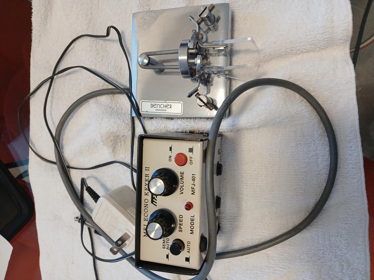 BENCH. ER Chrome Iambic paddles with MFJ 401 Econo Keyer. Paddles in good shape and Keyer shows sign of wear. Both work great. $75