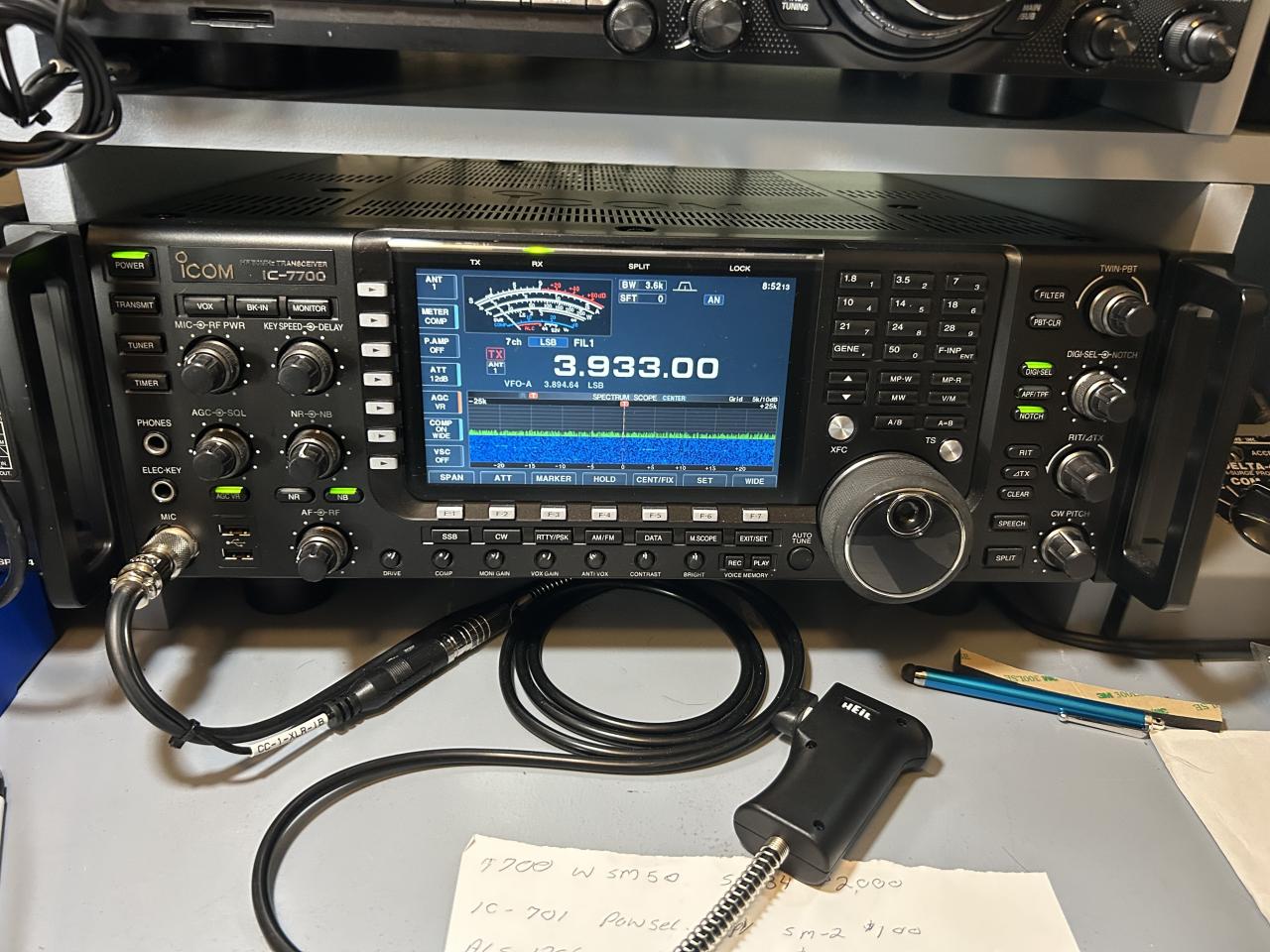 Icom ic-7700 looks and works beautifully comes with factory manual rack handles and extended front feet. I don’t have the original boxes unfortunately. So I really don’t want to ship but I’m a truck driver and couldn’t meet up somewhere in ga. Sc. Or Alabama. $2000 or trade for a flex 6400m or 6600m or maybe a fairly new ic-7610. I would ad cash for the 6600m thanks let me know.