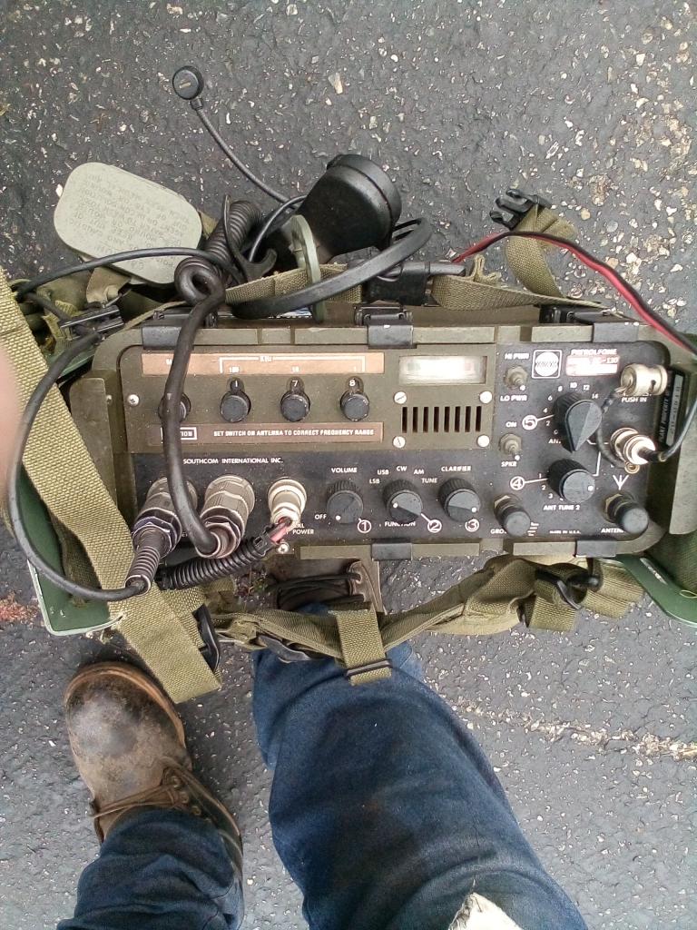 Man pack transceiver with antenna and 3 battery packs. Contact me through QTH if you need more photos