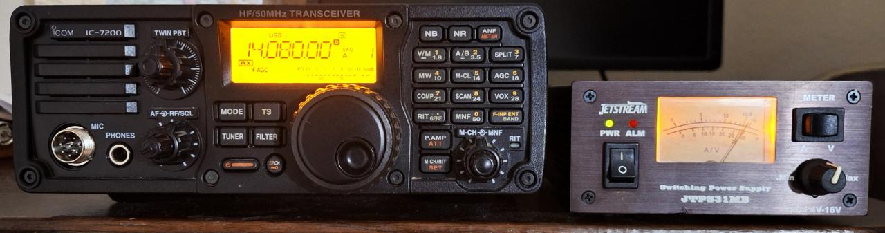 ICOM 7200, works exactly as it should and in nice cosmetic condition. The radio is paired with a Jetstream power supply that provides user-adjustable 4 to 16 volts at 25A continuous, up to 30A surge. The power supply is rated 4.8/5 on eHam. Included are the original manual, original hand microphone and a DC cable that mates the radio to the power supply. Will not separate, must buy the whole package. Double-boxed and ready to ship now. Price is $725 shipped and insured anywhere in continental USA if paid by Zelle, Paypal F&F or personal check. Price if Paypal G&S is $749 (buyer pays 3% fee).