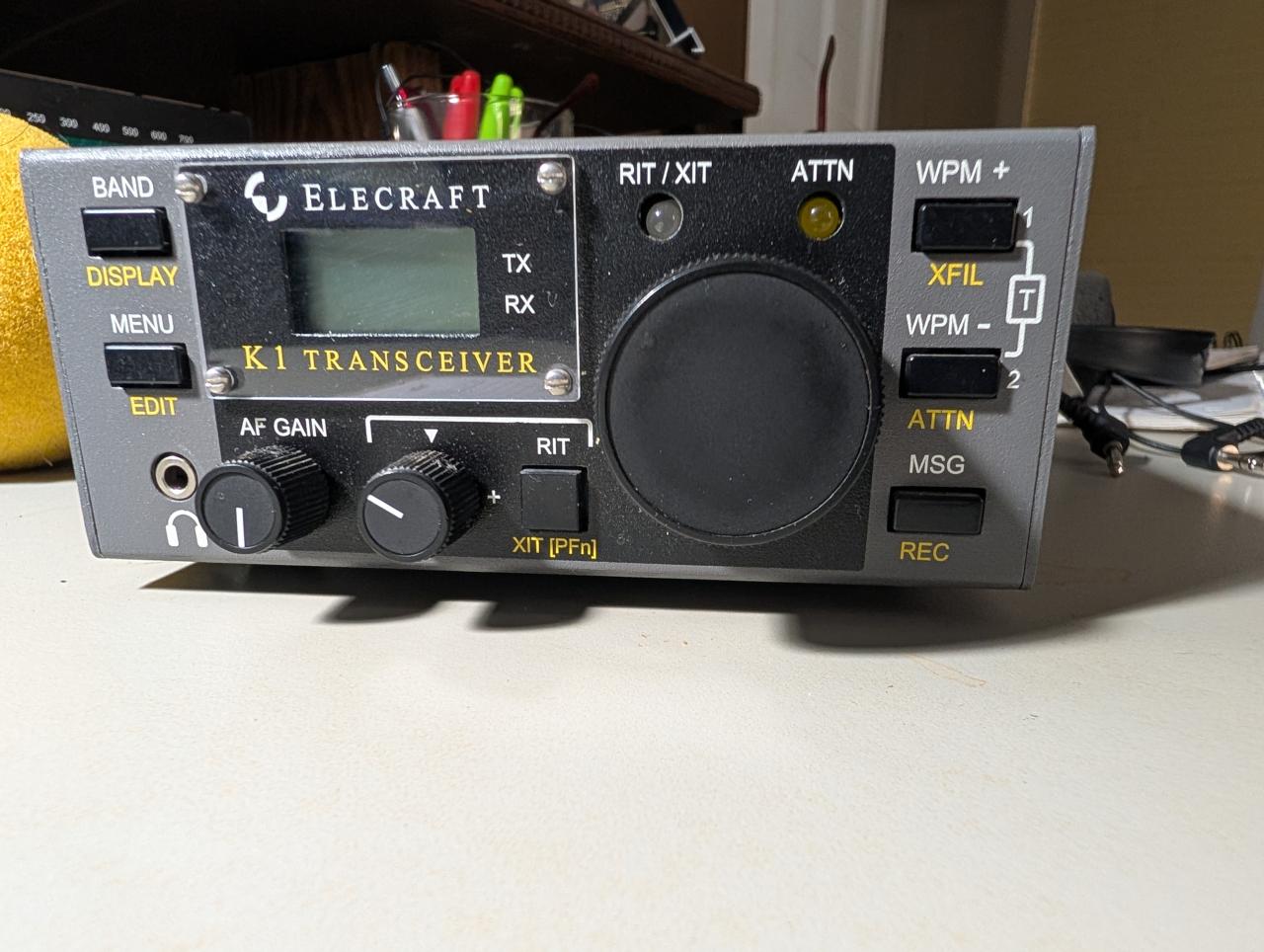 From my late uncle's estate. K1 transceiver works as should, no ATU. Four bands, 40-30-20-15. Fired it up and worked a number of POTA stations. Sales are final, no trades. PayPal OK. Asking $420 which includes shipping and insurance. One quirk, the speaker is not wired, headphones only, should be a easy fix