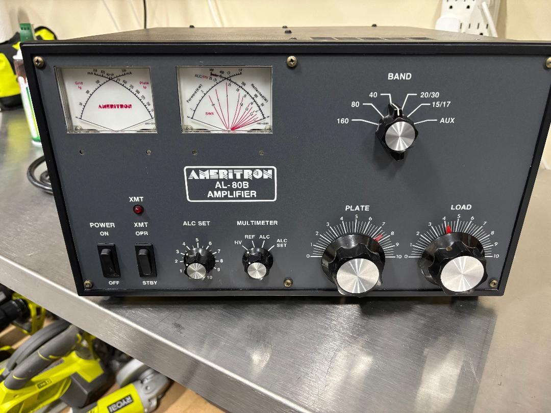 Estate sale AL-80B that has been tested and works fine. Tube has full output. Two issues - left hand meter backlight is out and the RF output meter does not move. The HV meter is working however. Would imagine not to hard to repair. Cabinet in good shape and front panel excellent. Non-smoker owned. Price reduced to $800. Pickup in Las Vegas or Mesquite NV. Prefer not to ship.