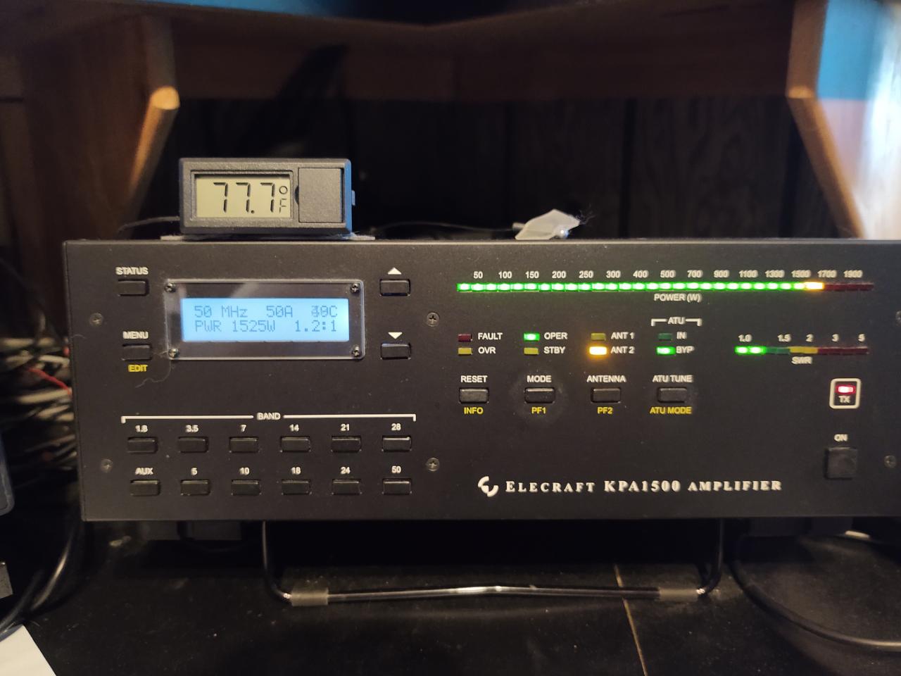 Selling my KPA-1500 HF and 6 mtr KW+ amp! It is serial number 407 with firmware VER 02.67 which is the latest. Just back from Elecraft for minor repairs and updating to newest versions. Power supply is in separate unit and makes for cooler quieter operation from the TX unit. It is fully automatic with built in antenna tuner for up to 3:1 SWR. Factory shipping container, manual and cables included. I bought an Expert 2K-FA to use while the 1500 was back to the factory and one of them needs a new home. Any questions just ask. First $5500 plus shipping .... prefer pick up here in Alabama but will ship.