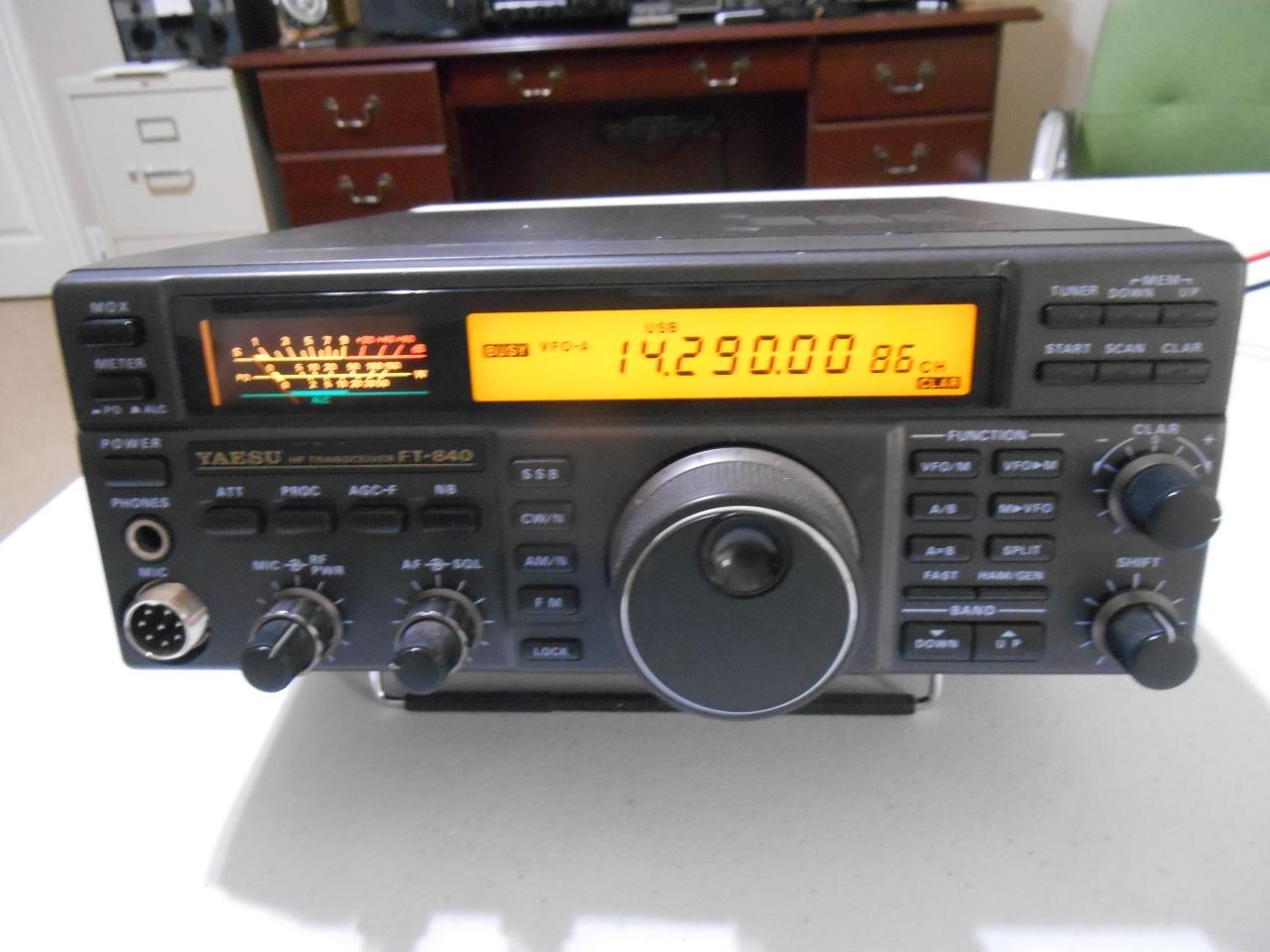 A nice well cared for Yaesu FT-840, very good cosmetically with no dents, dings or scratches. The radio performs all functions well and output is 100+ watts all bands coupled with a great receiver. Coverage is 160 through 10 meters and a new memory battery was just installed. The sale includes the radio, power cord and a like new Yaesu MH-1B8 microphone. Price is $350 plus discount shipping. Prefer USPSMO, Paypal F&F or your check with shipping held until it clears. For the usual reasons sale is as is, no warranty or returns. Contact via this site or my email is good on QRZ. Thanks for looking