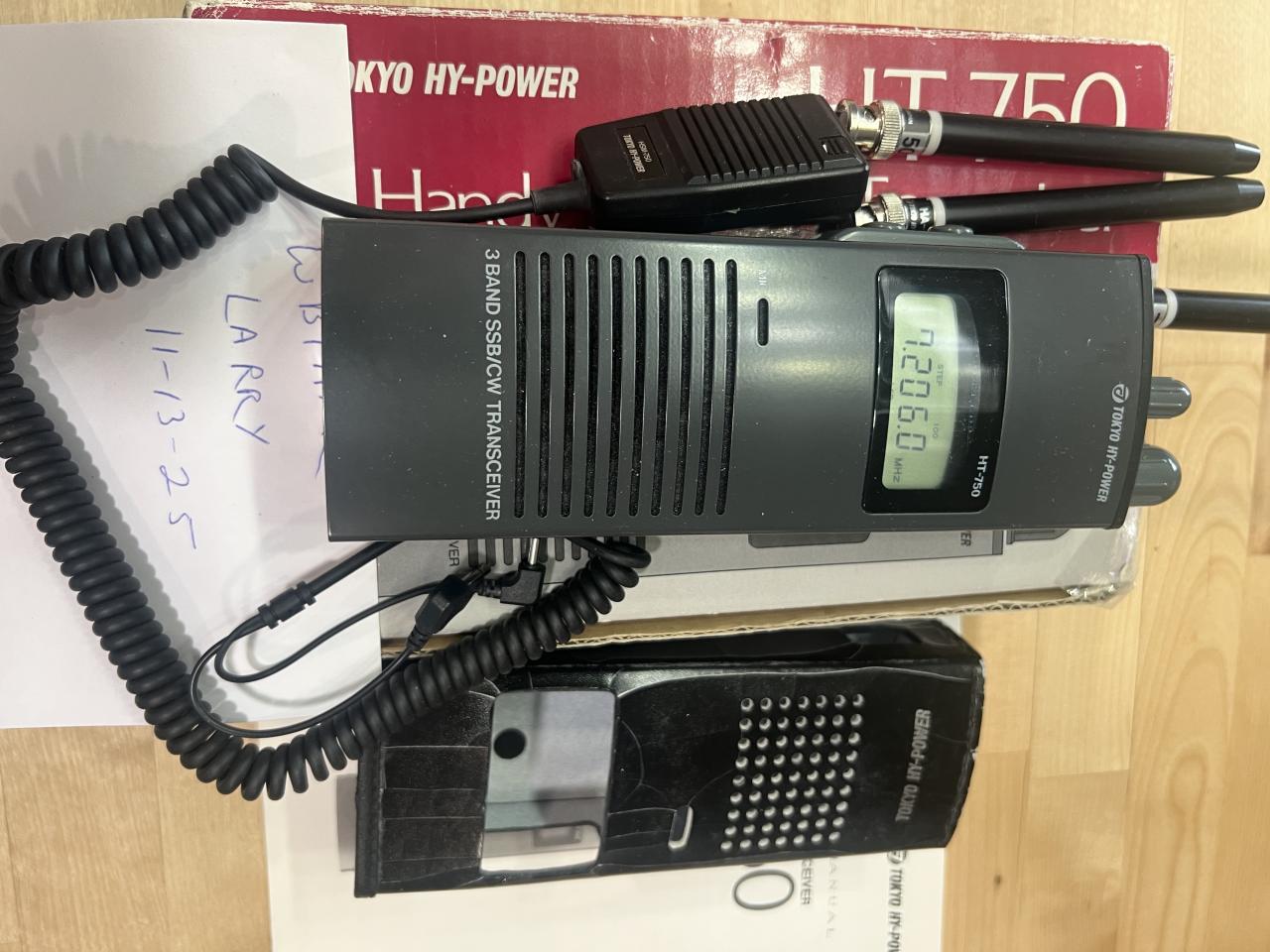 Very nice HT-750 7/21/50 MHz SSB-CW hand held transceiver. Comes with hand mike, the 7/21/50 antenna coils and case. The leather case is dry cracked but fully functional. Box and manual included. These don’t show up very often. On my 40 meter inverted V if I can hear them I can work them. Has a fantastic receiver. $850 shipped. PayPal or Zelle.