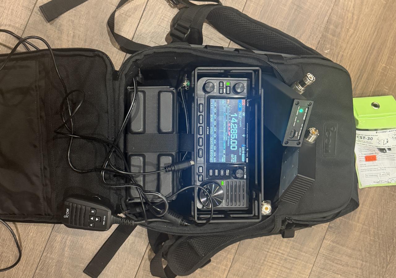 Icom 705 in armoloq cage with optional battery holder. Also includes MAT tuner and ICOM 705 backpack as well as a duplexer. $1600 Shipped continental US