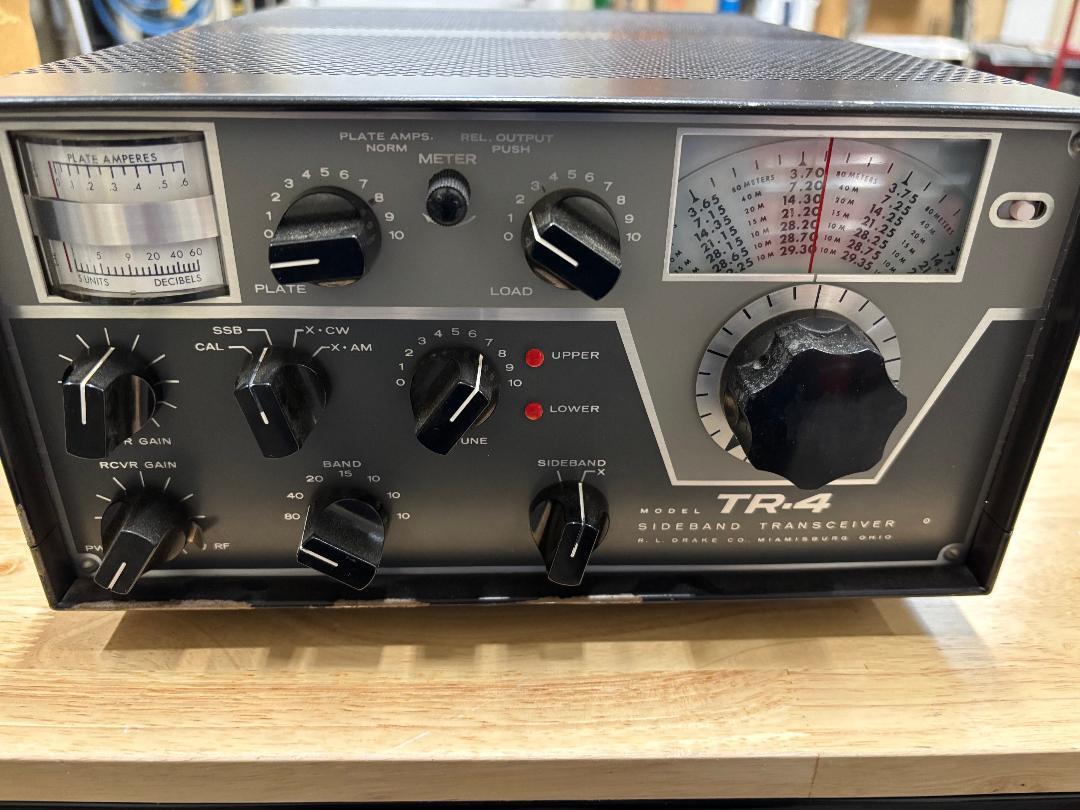 TR4 in really nice physical shape. Barely any output and no receive. All the tubes light up but don't get anything. Front panel is excellent and a great candidate for restoring. Cabinet not beat up but paint is missing on some edges. Copper chassis not bad at all. $75 plus shipping. Non-smoker owned.