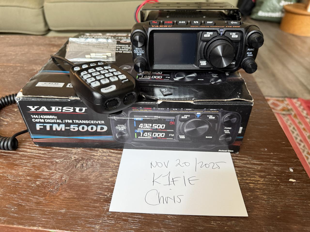 Yaesu FTM-500D, with original packaging, MINT condition. Comes with original mic, bracket, power cable, extra fuses and 8GB memory card.