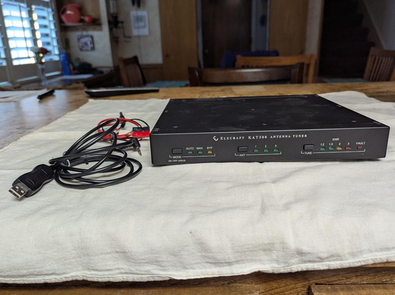 For sale is my KAT500 1.8-54 MHz high power autotuner. It is in excellent physical and electrical condition, and has the latest firmware load installed. I no longer need a high power autotuner as I’ve sold my KPA500. Included is a copy of the latest manual, a 12VDC power cable, and the KXUSB cable for software updates and control. Price is $650 shipped, or $625 local pickup in Richardson, TX. ZELLE (preferred), check (wait until cleared) or cash.