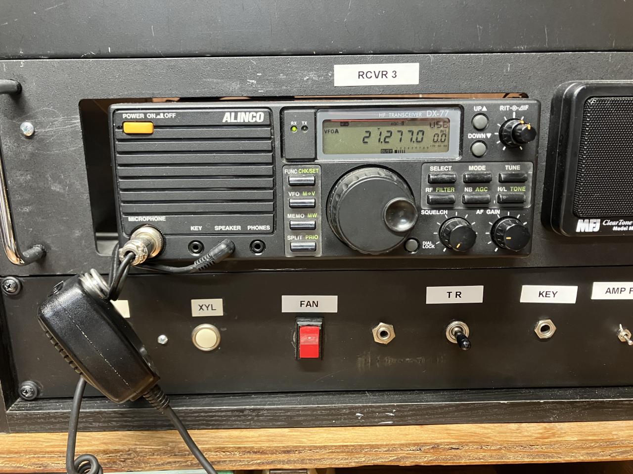 FOR SALE Very Rare- ALINCO DX-77 HF Transceiver- Works on ALL HF Ham bands including 5, 10, 18 & 24 MHz. Very good condition. Makes full power and receiver is fully functional. Makes very nice crisp audio. Modes are CW, AM, SSB & FM. Includes Manual, microphone and DC Power cord. Speaker built in. CW filter does not work well. SSB is fine. Rack Mount in picture not included.