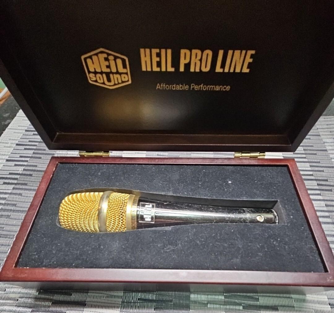 The Heil Goldline Pro Broadcast Mic professional quality dynamic cardioid microphone designed for commercial broadcast, recording and live sound reinforcement applications which require a smooth flat response over a wide frequency range. The GOLDLINE PRO has a comparable sound to the finest condenser microphone because of it's wide frequency response, excellent transient response and low IMD. Truly a remarkable dynamic microphone