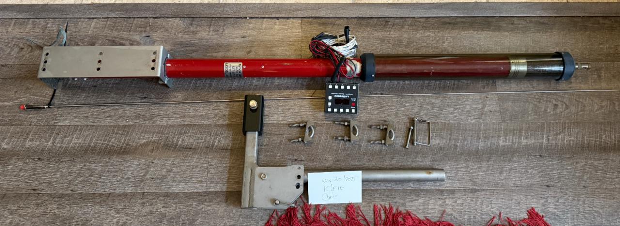 Comes with Tarheel 200A 1500W red antenna, MFJ Autotuner, Stainless Steel Folding Hitch, 6ft stainless whip, and (not shown) Tarheel Radial Plate with Radials, extension cable, and DXE Cap Hat with 3 sets of rods to cover all bands. Cost $1800 new.