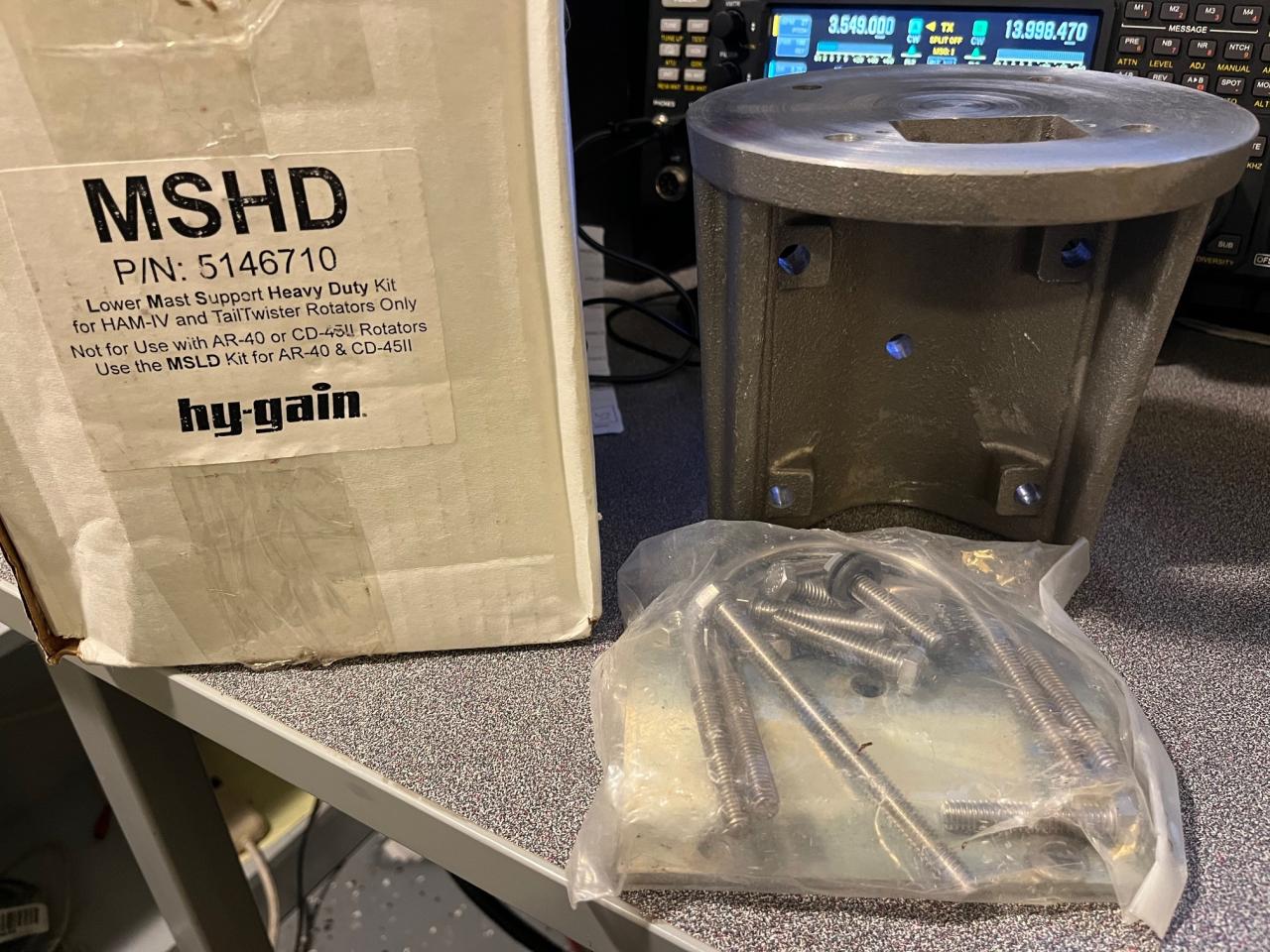 New in box, never used, hy-gain mast to rotator kit. Sold for $160 when MFJ had them. No longer available. $75.00 plus shipping from 27613.