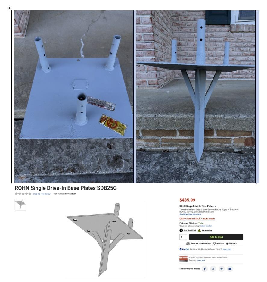 It seems that everything with our hobby is ridiculously expensive. DX Engineering carries this base plate for $435.99 as of 12/5/2025.